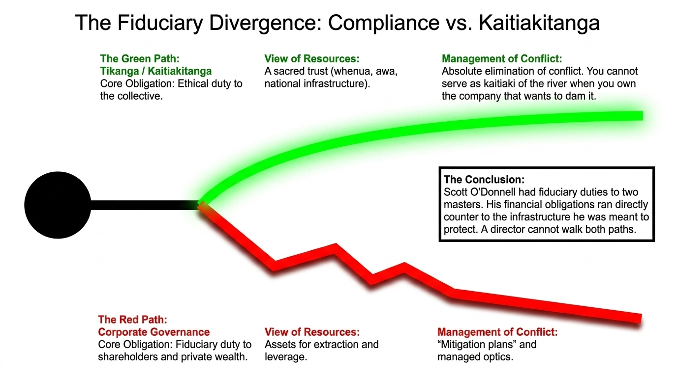 In tikanga terms: you cannot serve as kaitiaki of the river when you own the company that wants to dam it.
