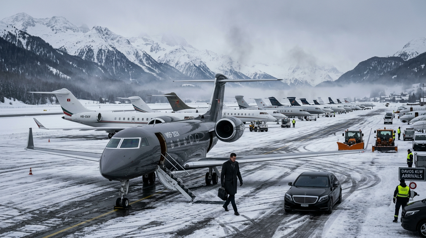 In January 2023, approximately 1,500 private jets flew into Davos for the World Economic Forum — the summit at which world leaders discussed the climate emergency. The same class that privately jets into war zones to escape the consequences of their geopolitical investments privately jets into climate conferences to perform concern about the atmosphere their jets are destroying.