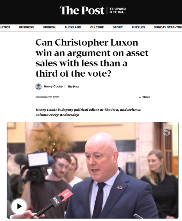 “Asset Sales: The Crisis of Legitimacy for Christopher Luxon’s Coalition” - 12 November 2025