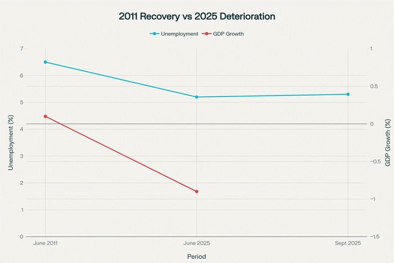 Economic Context Inverted: 2011 Recovery vs 2025 Deterioration