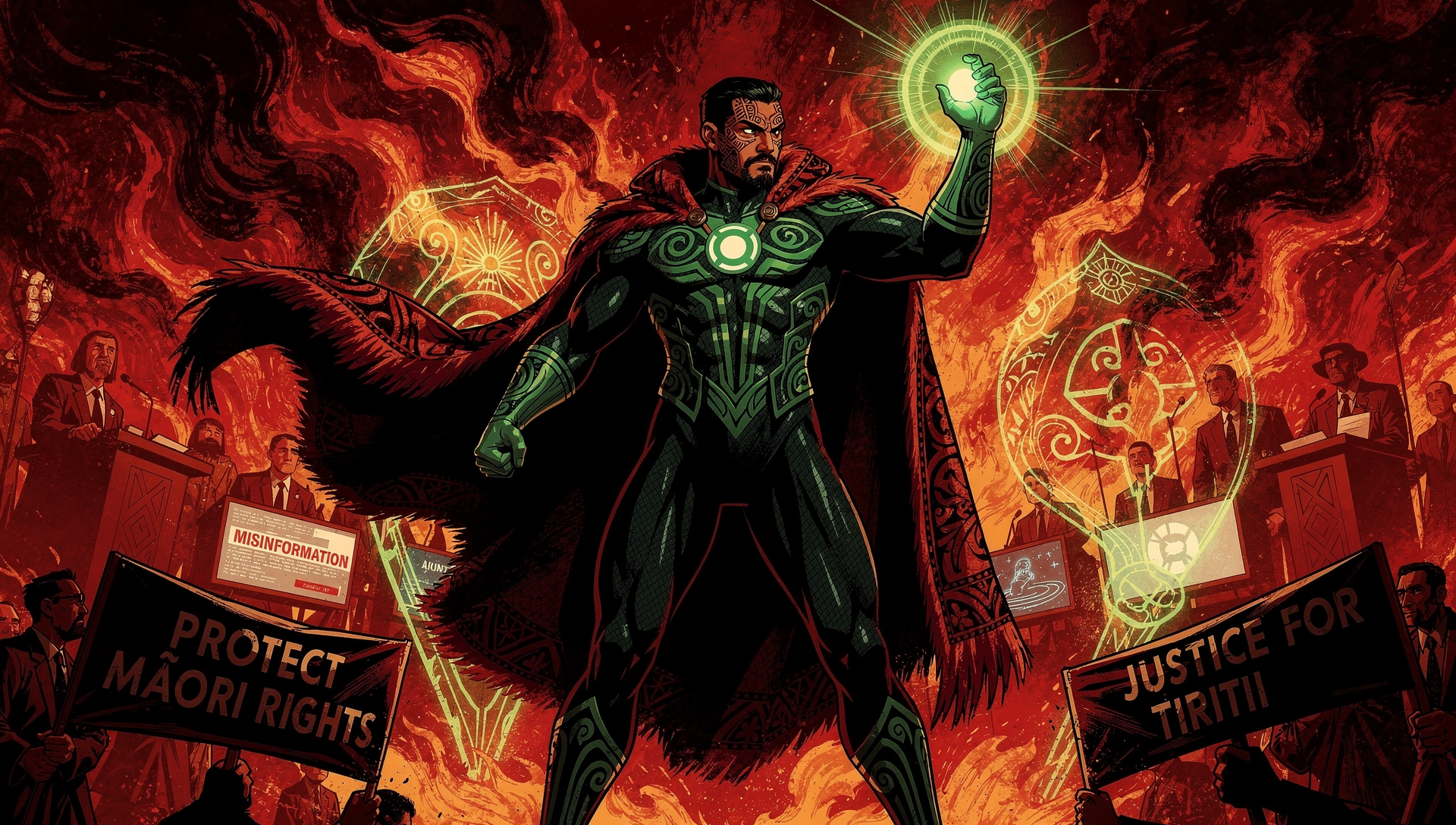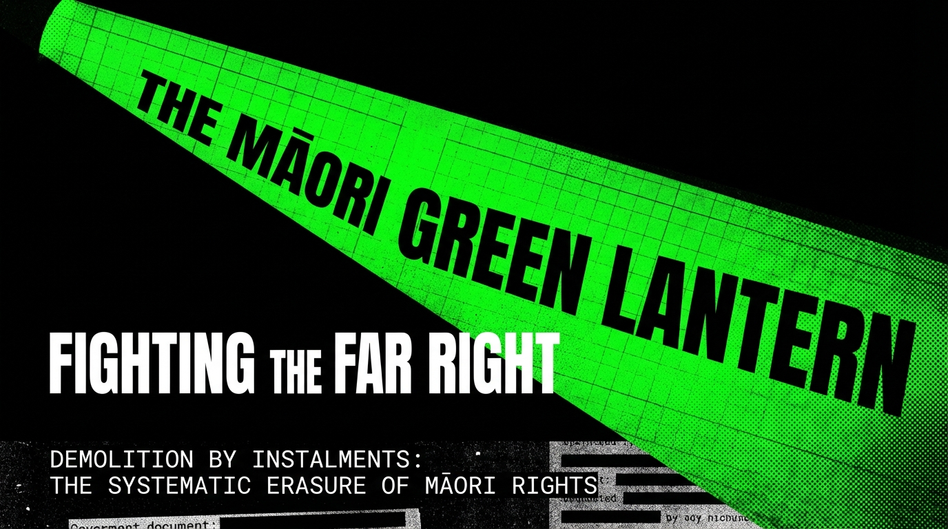 This essay belongs to the same line of fire as earlier Māori Green Lantern investigations into the coalition's anti-Māori agenda and neoliberal capture: