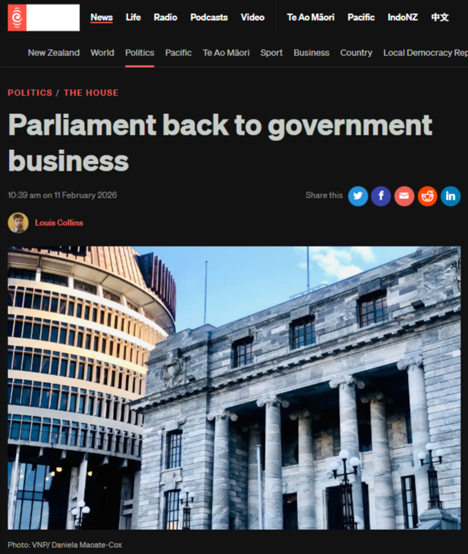 Key sources consulted: RNZ – Parliament back to government business; RNZ – Public Service Amendment Bill reignites diversity debate; NZ First DEI repeal bill text; NZ Herald – Collins-Roche WhatsApp messages; Te Tiratu – Pae Ora Amendment Bill; PSA – Māori marginalised by Pae Ora changes; Te Kāhui Hauora rejection; NZCCSS – Public Finance Bill submission; Treasury – Public Finance Amendment Bill cabinet paper; Te Kawa Mataaho – DEI guidance; 1News – Sir Brian Roche on politicisation; RNZ – Public service redundancies 865; RNZ – Commissioner won't rule out absorbing ministries; Cabinet paper – Public Service Act amendments; Māori Green Lantern essays on Substack.