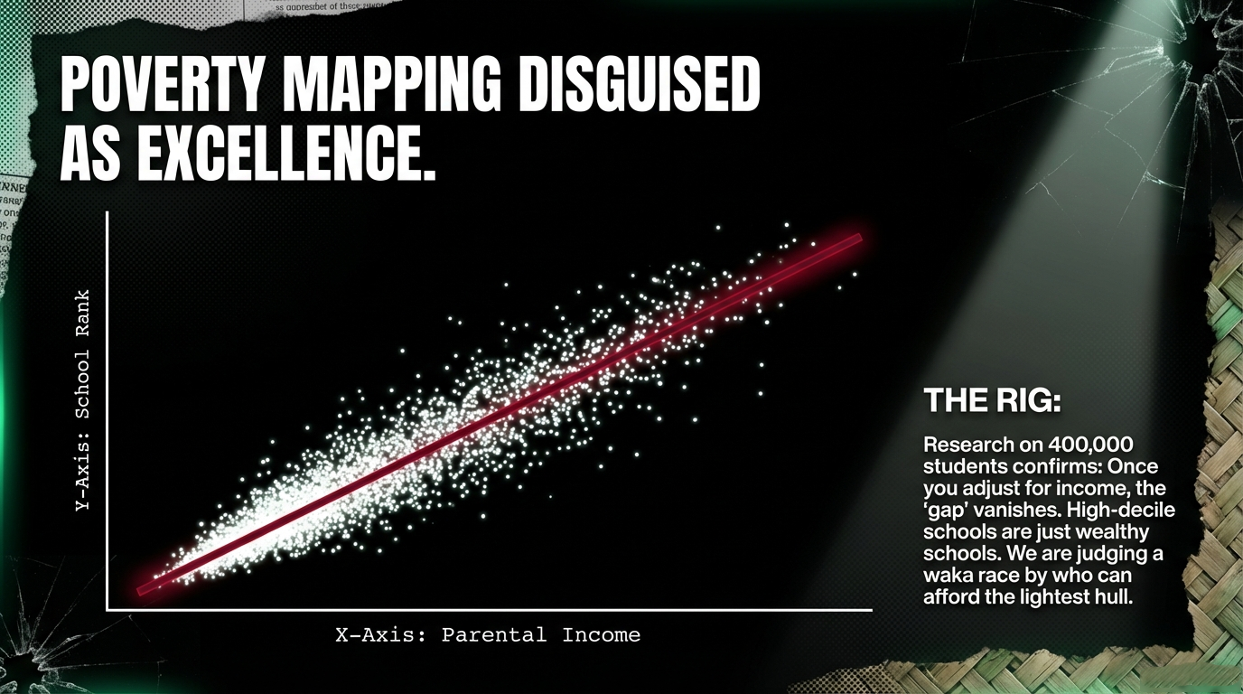 Aotearoa’s “top school” rankings are not information—they’re a coloniser’s carnival trick that turns Māori tamariki into bad statistics, props up real‑estate profits, and calls it education