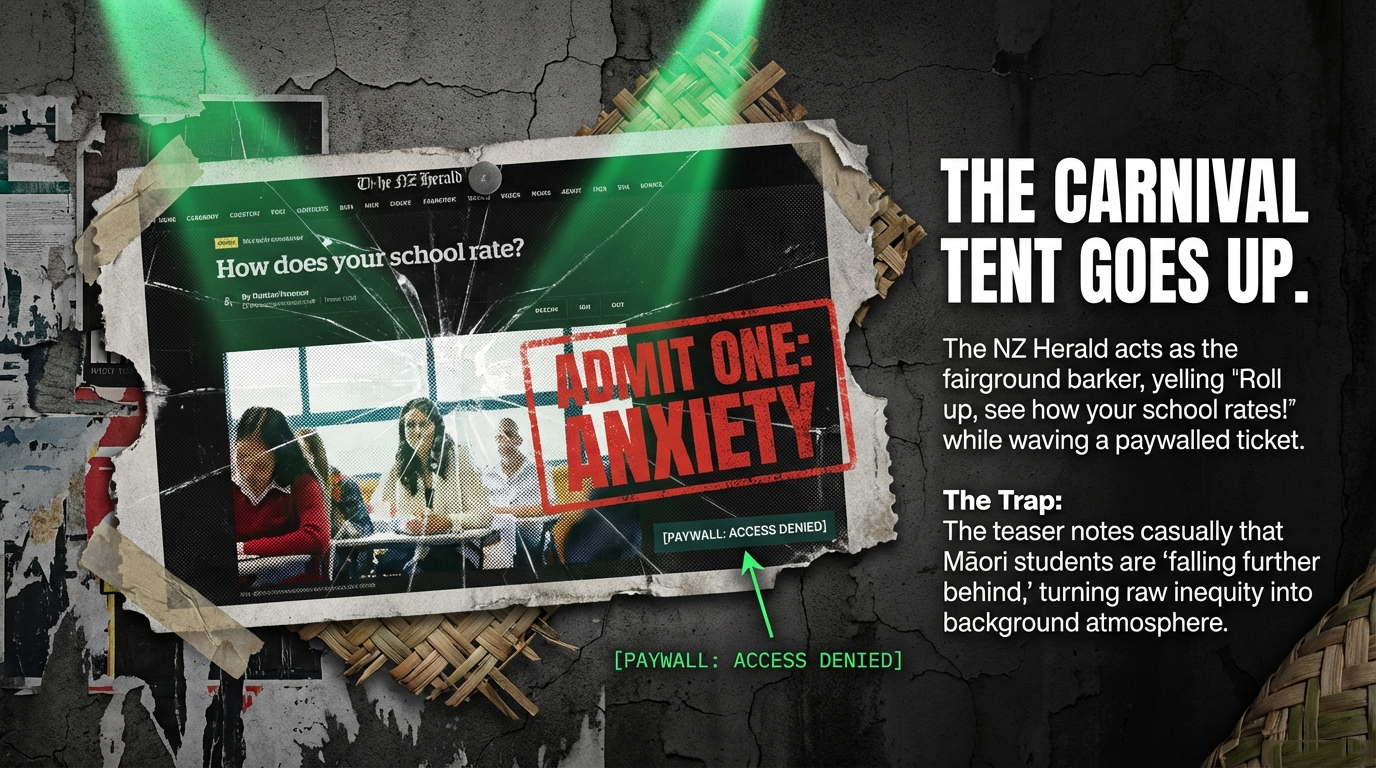 So when Herald reporters pipe that same tune through the NCEA and UE funhouse, splash a stylised classroom photo on top, and push it out via the politics section, they are not “informing” but running a sideshow that converts whakapapa, postcode and parental income into a betting form for the education markets and real‑estate agents. NZ Herald teaser NCEA provisional data