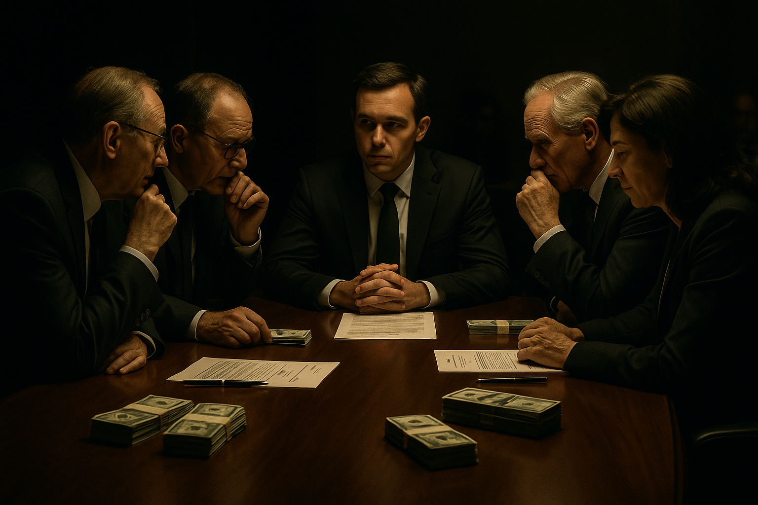 Corporate boardroom representing backroom healthcare privatization deals