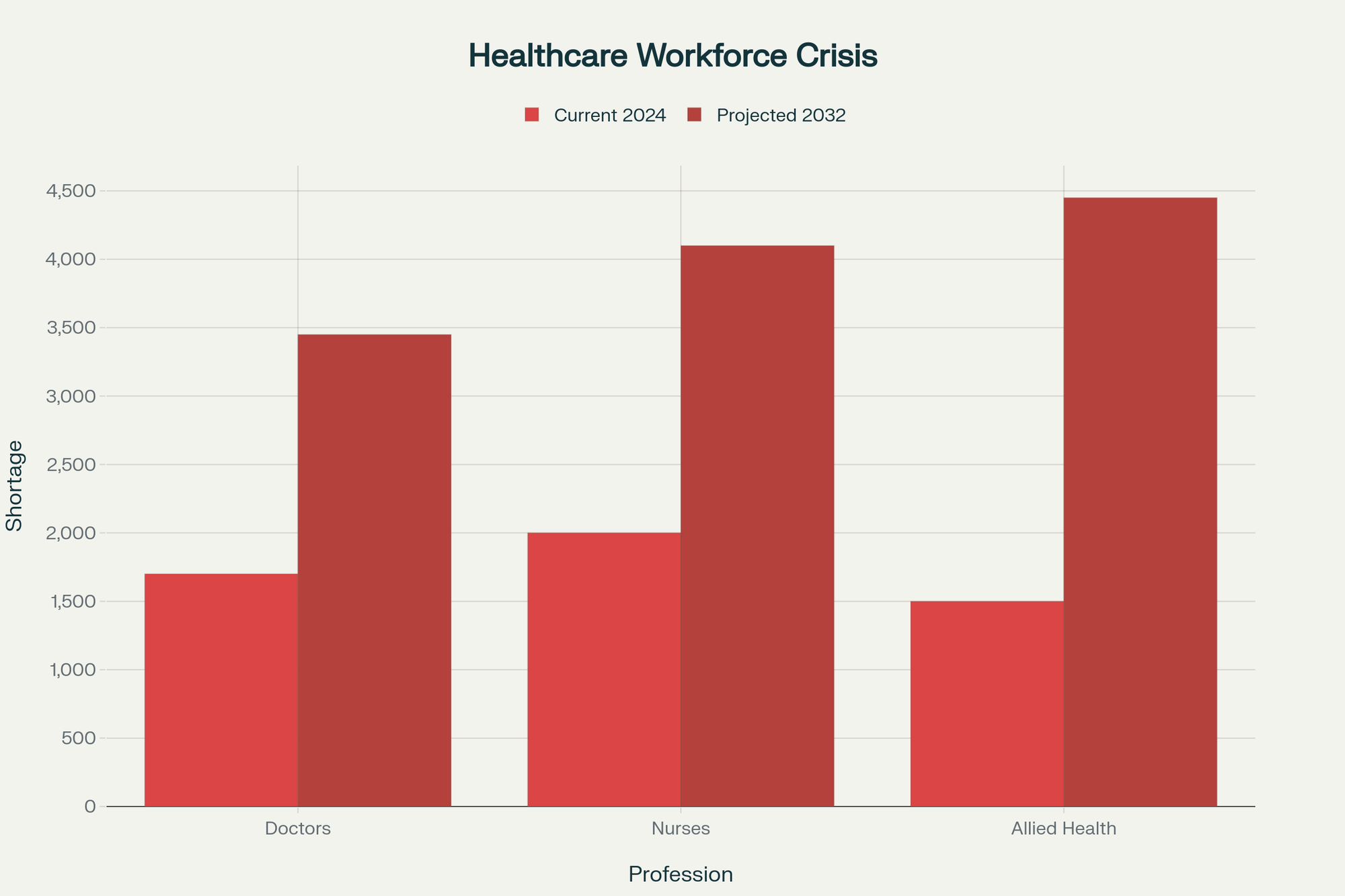 Comparison of current versus projected healthcare workforce shortages showing the looming crisis in medical staffing