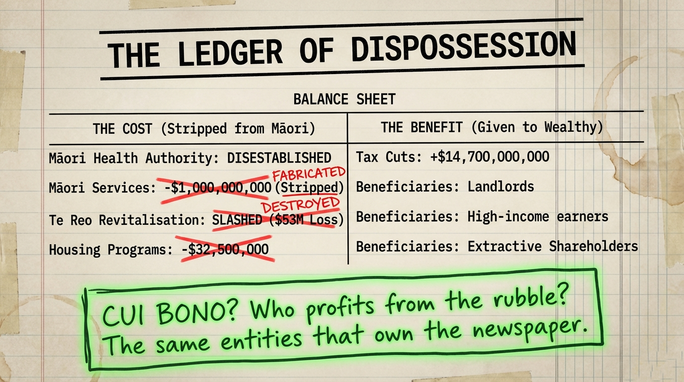 Māori housing programs cut by $32.5 million. Māori education cut by $36.1 million. Te reo funding slashed—which economists quantify as a $53 million annual economic loss.