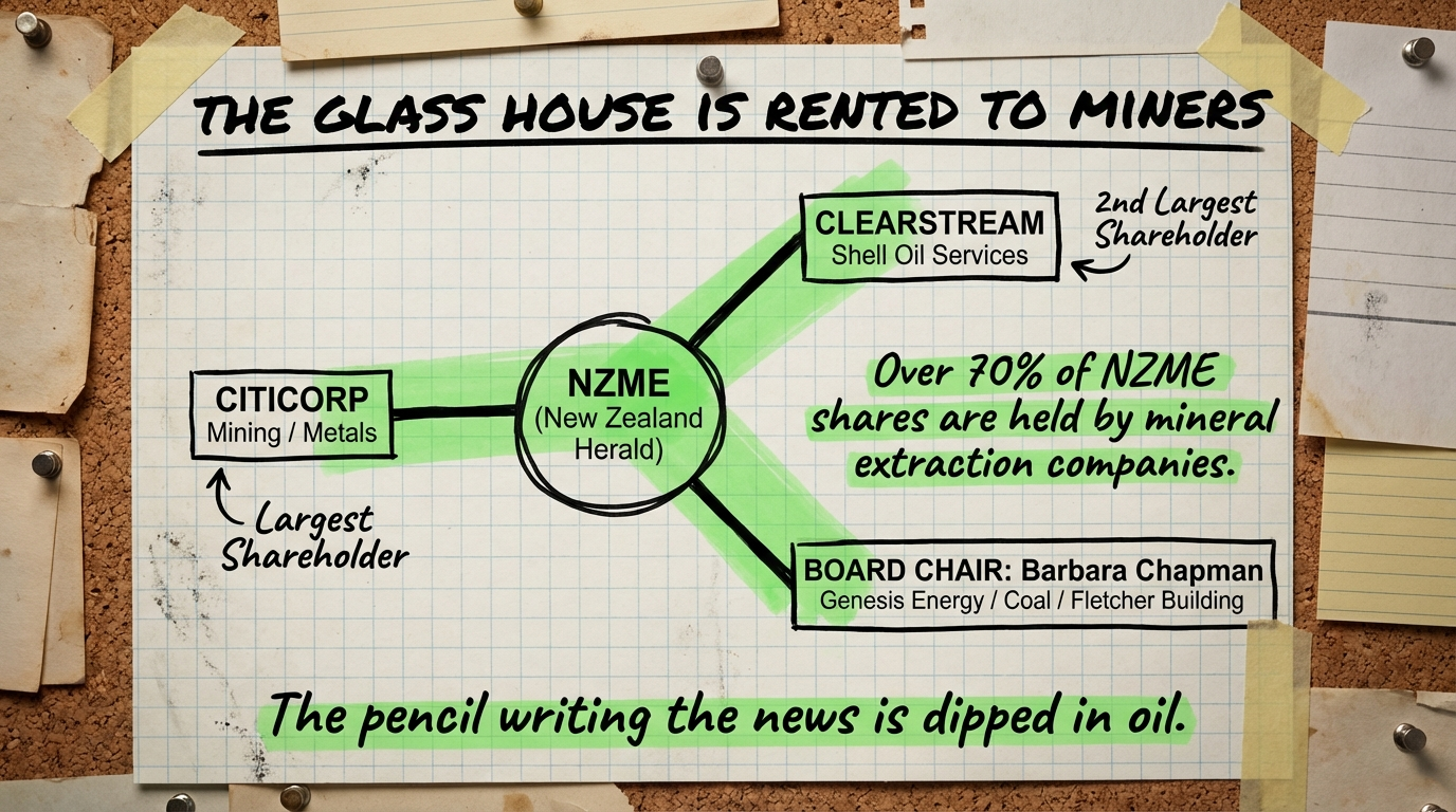The answer is printed on every masthead of NZME. Owned by miners. Operated for extraction. Staffed by journalists willing to perform propaganda for a wage.