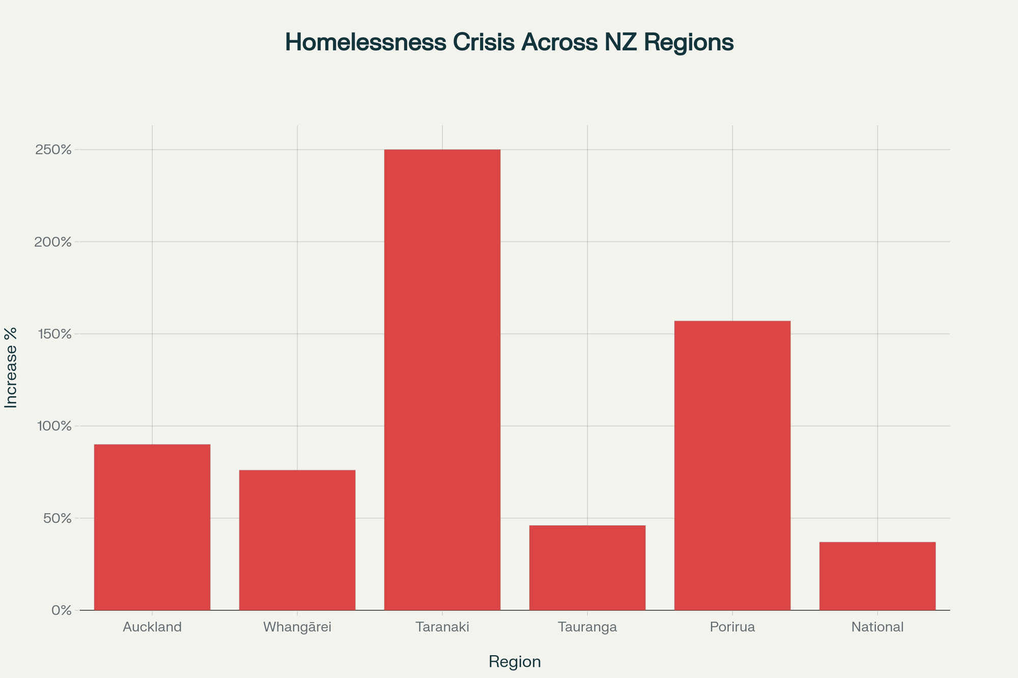 Chart showing dramatic increases in homelessness across New Zealand regions following National's emergency housing policy changes
