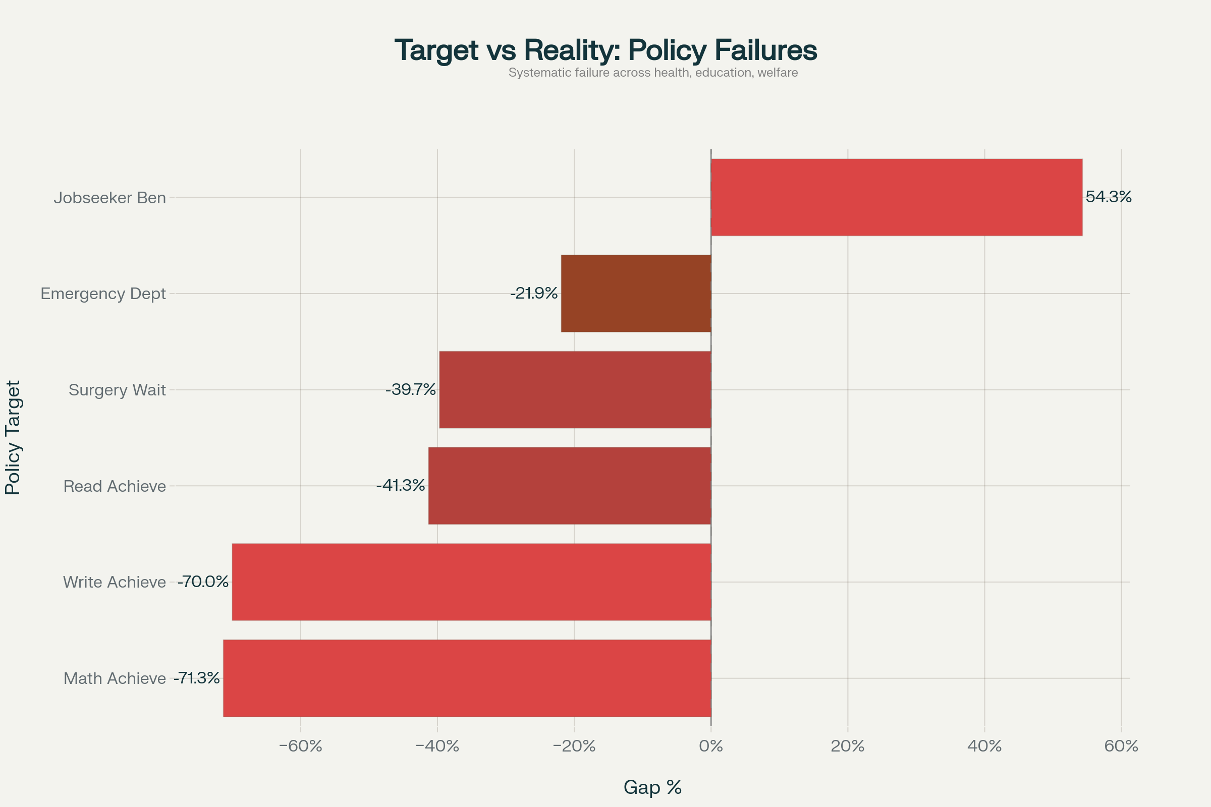 Chart showing the massive gaps between National-led coalition government targets and actual performance across critical public services