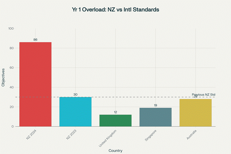 The experts warned: “Too many objectives means children will not be able to learn core concepts due to cognitive overload and insufficient time for practice” (Gerritsen, 2025, October 28). But Stanford copied Australian curriculum without adjusting for New Zealand kids being a year younger. That’s not reform—that’s educational malpractice.
