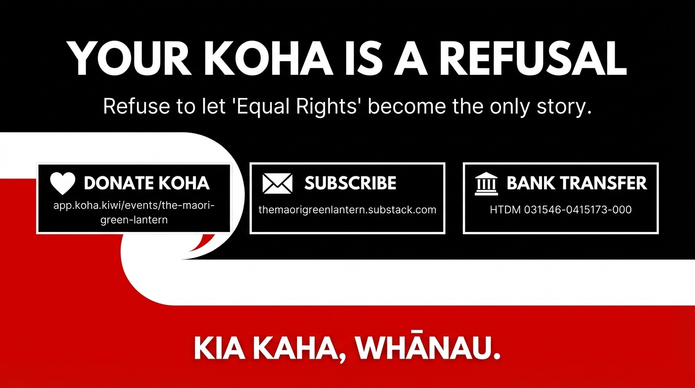 Subscribe to The Māori Green Lantern on Substack – https://themaorigreenlantern.substack.com/subscribe - For those who prefer direct bank transfer, account details are: HTDM, account number 031546‑0415173‑000.