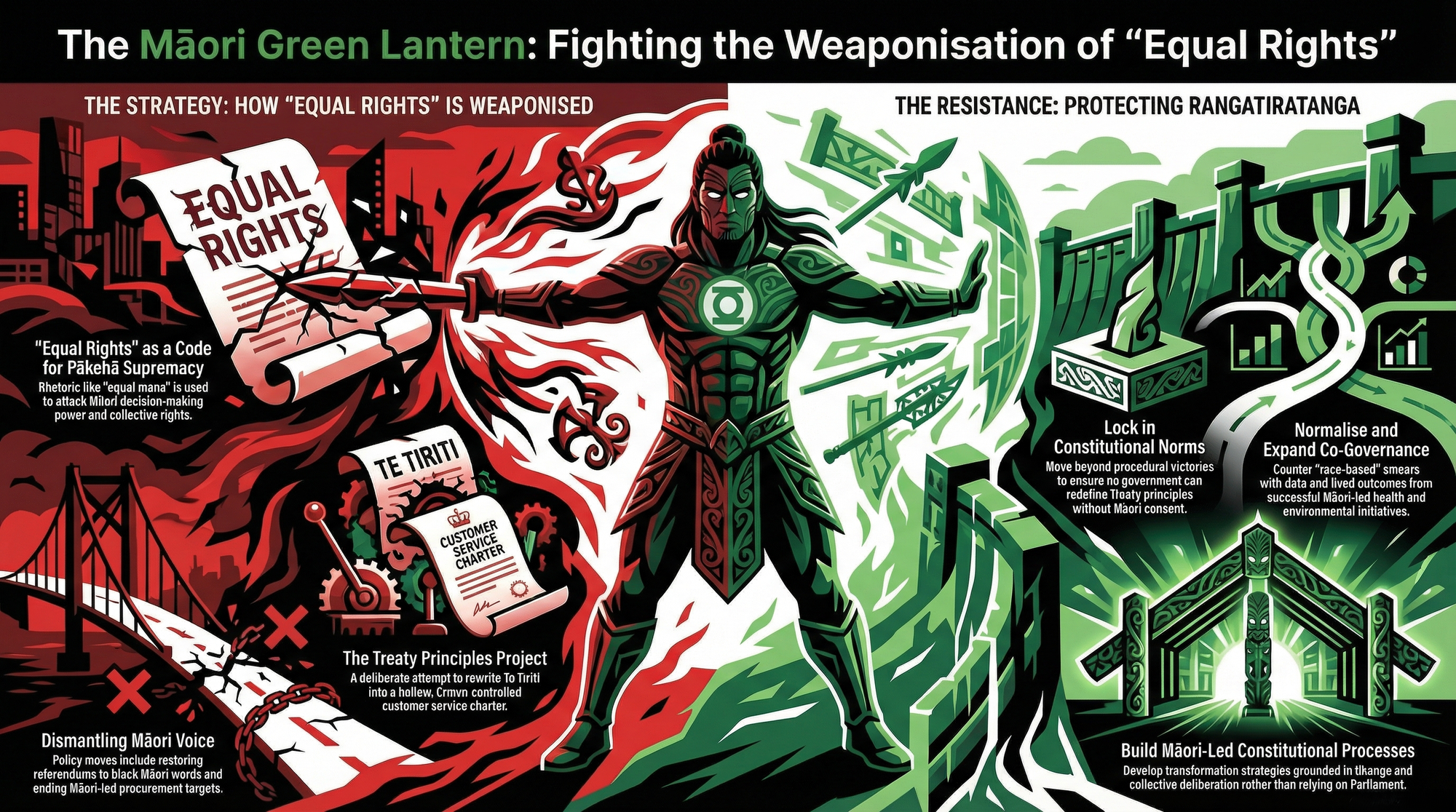 “Equal rights” in Seymour’s mouth is not a shield for everyone. It is a blade aimed precisely at Māori collective rights.