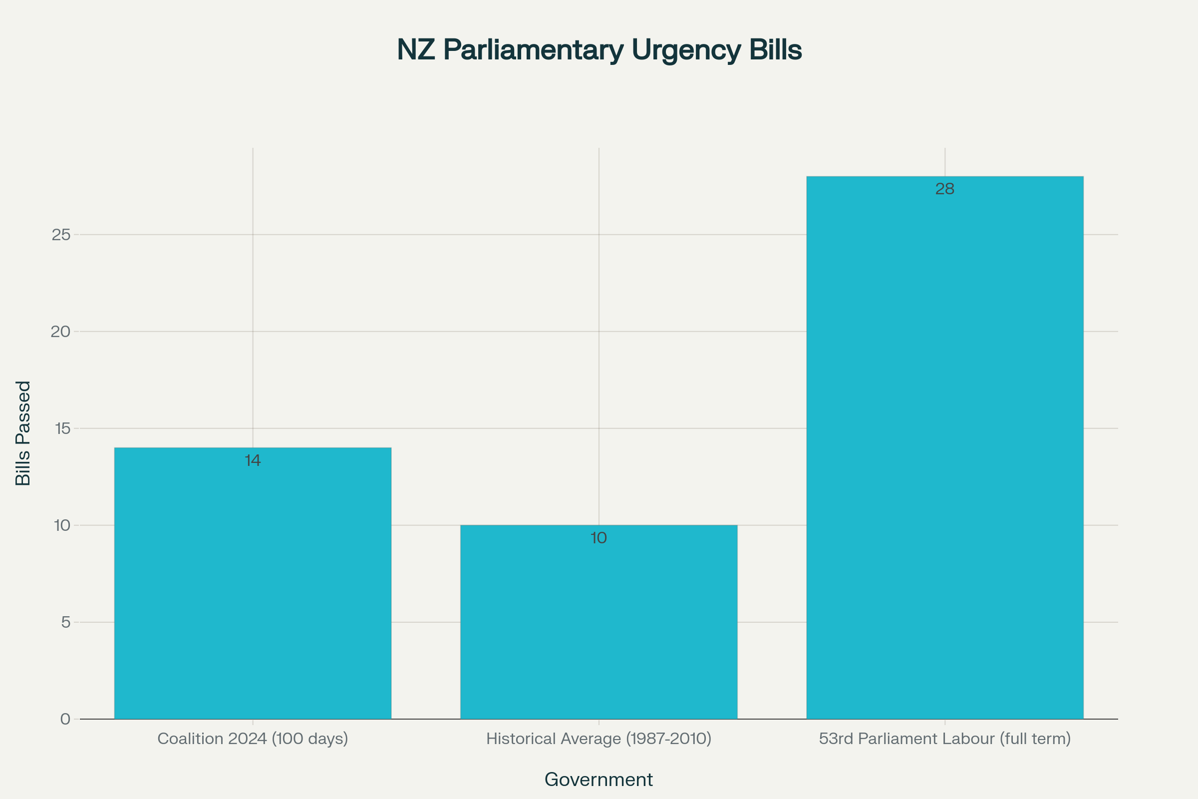 The Coalition's urgency timeline reveals a disturbing pattern of escalation. They started with James Shaw warning in March 2024 that the government had passed 16 bills through urgency versus just one through normal process. By May 2025, the coalition was nearing the previous 17-year record of 28 bills passed this way in one term.