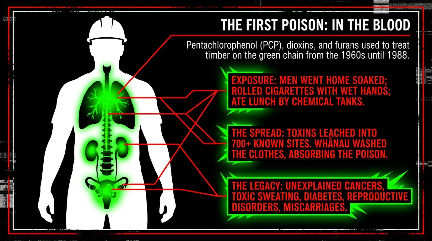 This is the second essay in The Green Chain Series — a five-part investigation into the PCP poisoning of sawmill workers, the contamination of Whakatāne, and the Crown systems that chose profit, delay, and denial over truth.