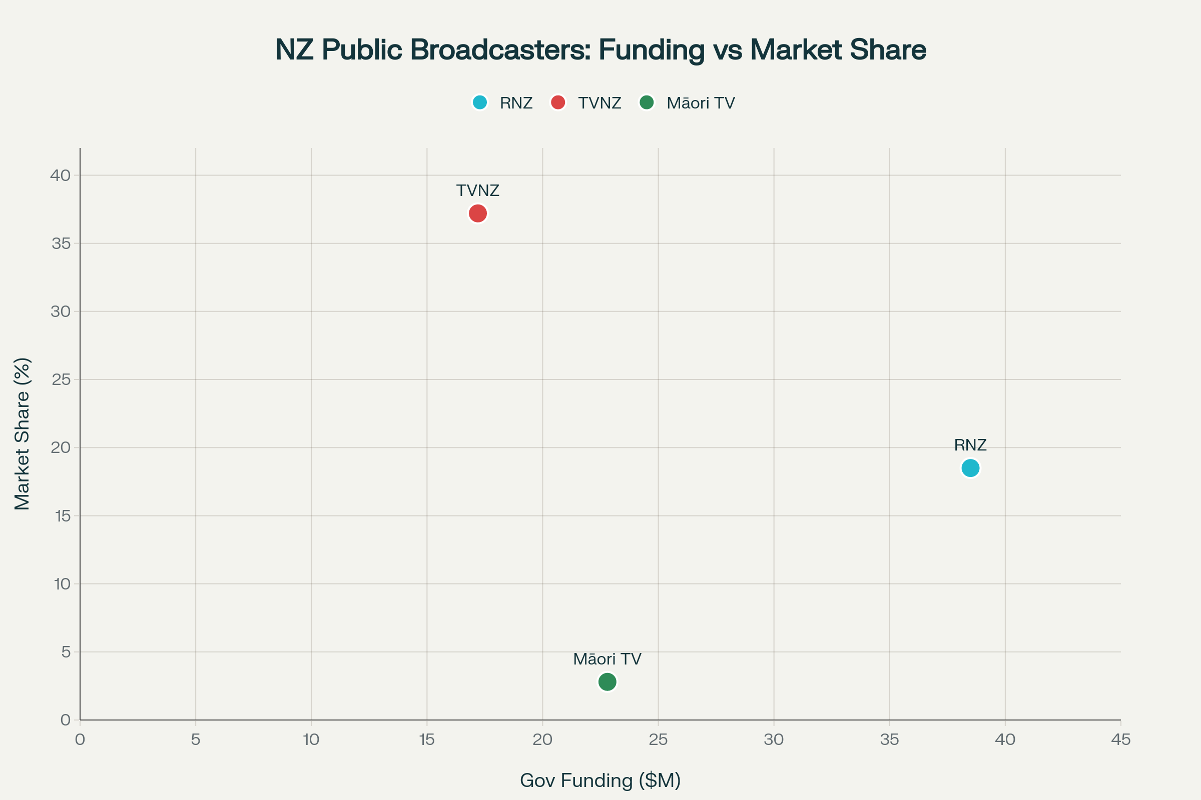 Lie 1: "Taxpayer-funded broadcaster" - This phrase isn't neutral description; it's a neoliberal dog-whistle designed to frame public service as parasitic burden. RNZ receives approximately NZ$38 million annually—less than 0.04% of total government spending—while providing crucial public interest journalism that commercial media cannot afford. The "taxpayer-funded" framing deliberately ignores that RNZ's funding comes from progressive taxation systems where wealthy New Zealanders contribute proportionally more, making this a redistribution mechanism that supports democratic discourse.