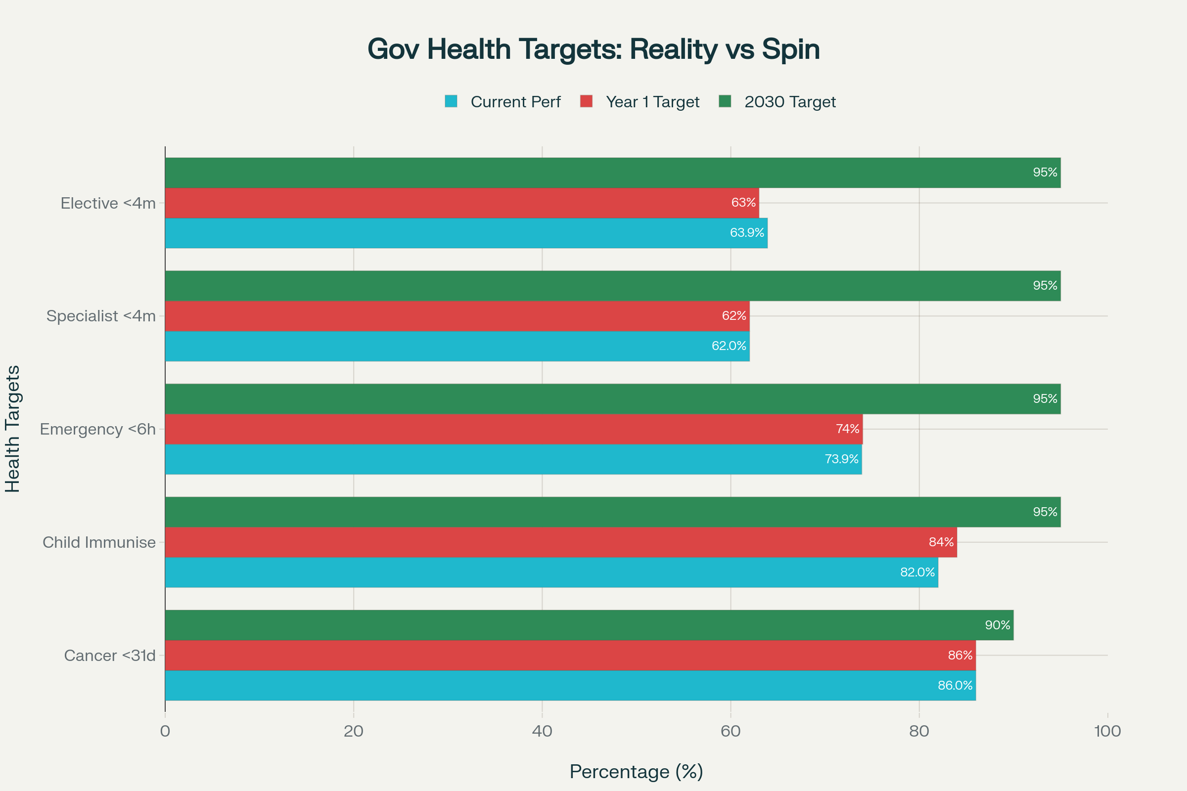 Health targets performance showing the government’s failure to meet basic healthcare milestones, particularly in child immunisation and emergency department wait times