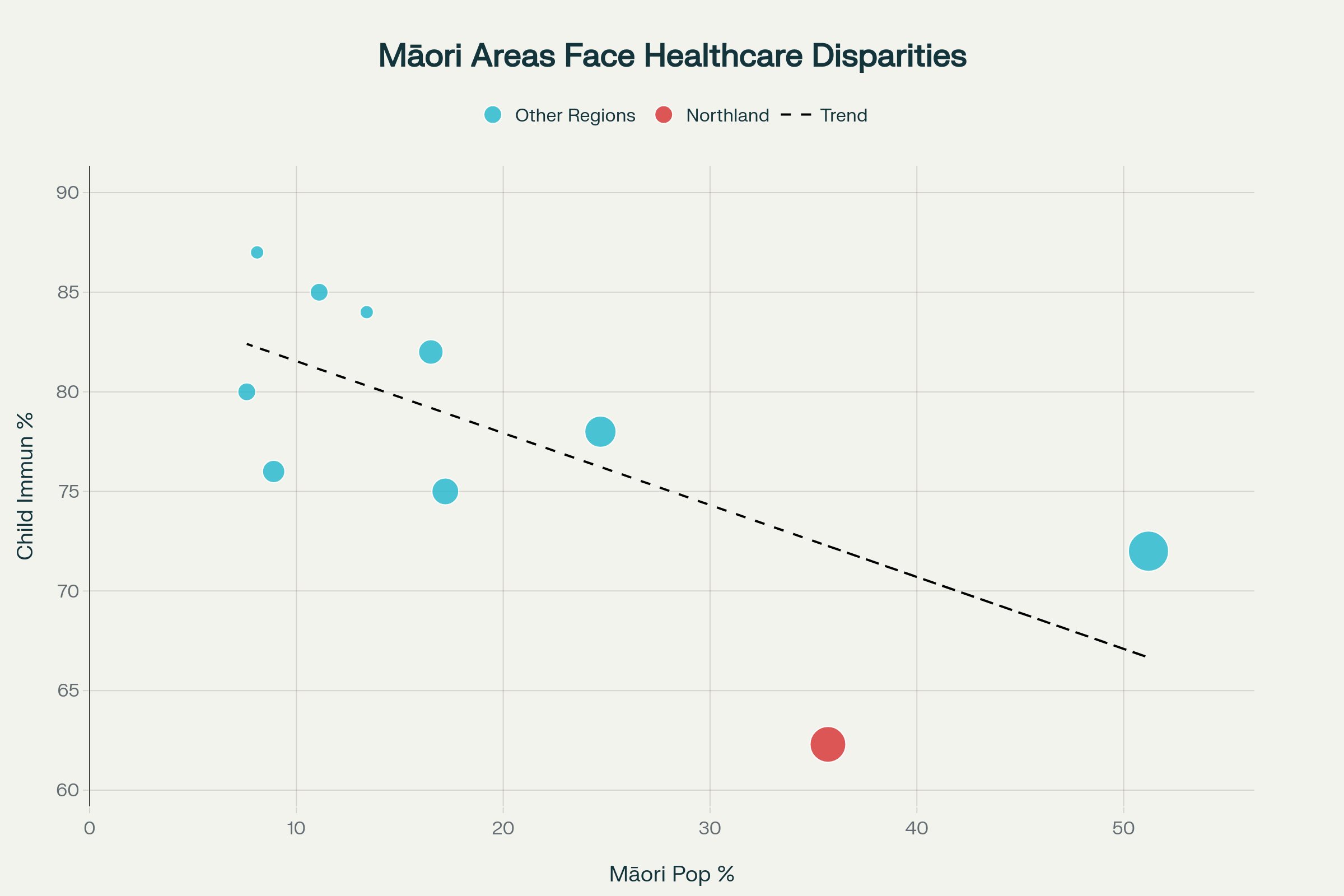 Regional health disparities revealing how areas with higher Māori populations systematically receive worse healthcare outcomes, exposing institutional racism in the health system