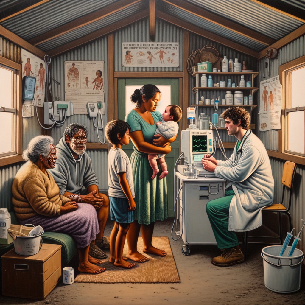 Māori whānau facing healthcare barriers in rural New Zealand, illustrating systemic inequities