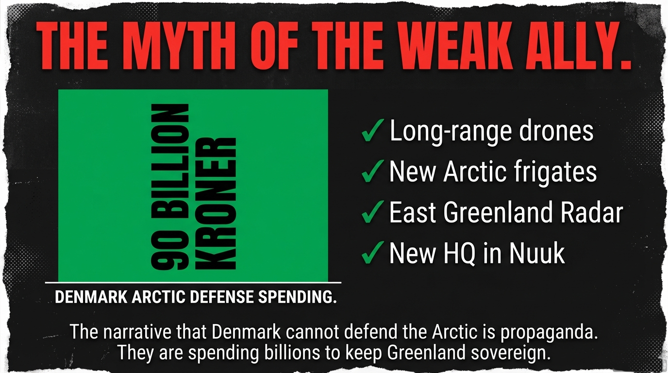 Denmark is pouring tens of billions into Arctic security specifically to reassure NATO while keeping Greenland sovereign. The “Denmark is weak” narrative isn’t based on evidence. It’s propaganda designed to justify a land-grab.