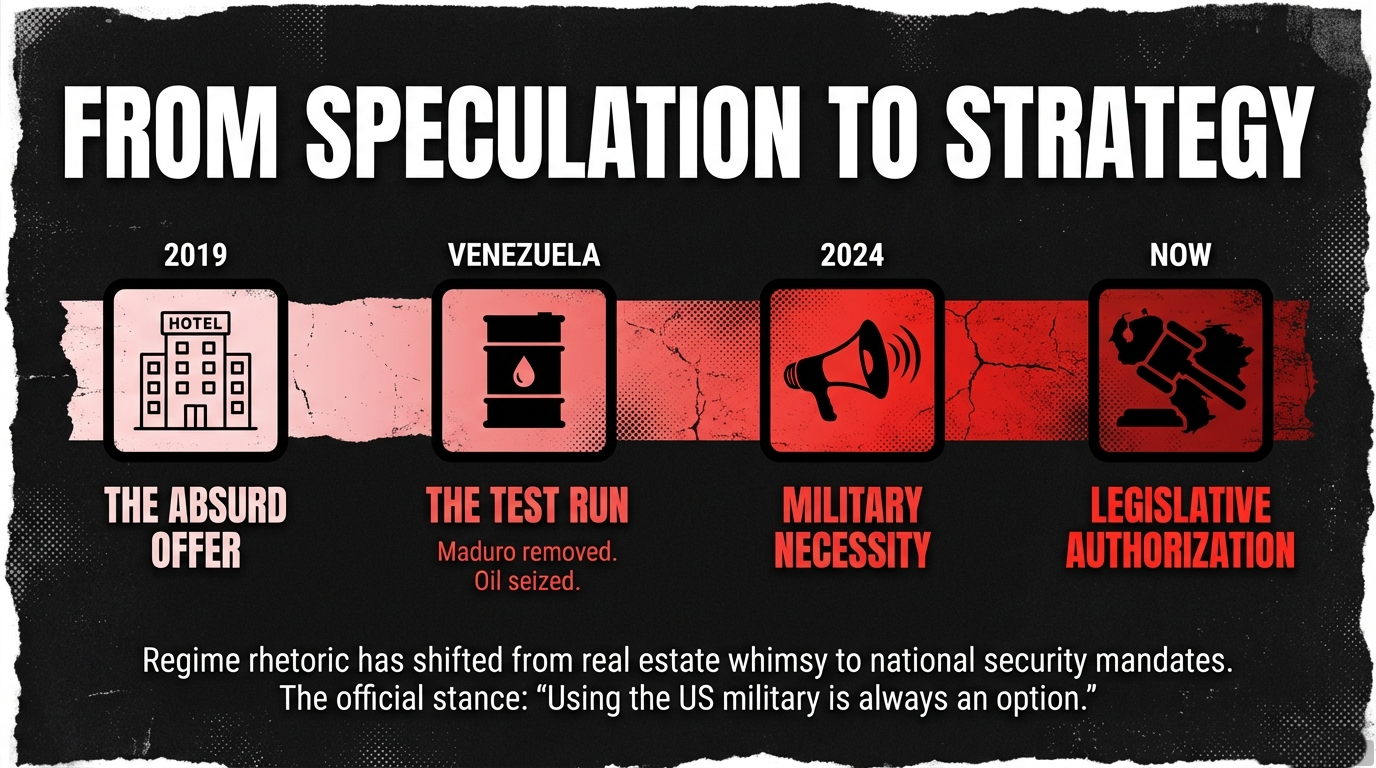 Trump’s fixation on Greenland didn’t drop out of the sky. During his first presidency, he floated the idea of buying it like a trophy penthouse. Then, in December 2024, he revived it—this time with the language of necessity, not whimsy.