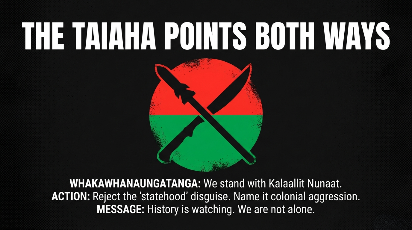 The taiaha points both ways. The way empire treats Greenland today is a mirror of how it treated Aotearoa for five centuries—and a warning of what it will try again if we ever stop defending rangatiratanga.