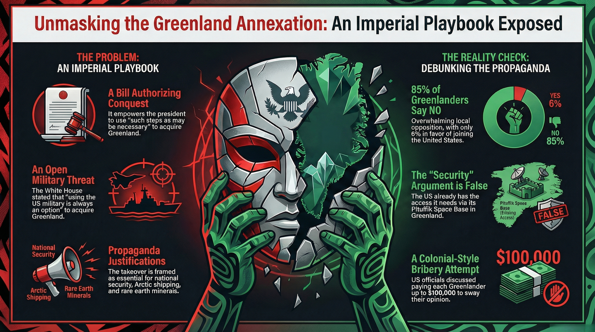 - Building networks with Greenlandic leaders, with Arctic Indigenous peoples, and with every nation and community resisting imperial expansion.