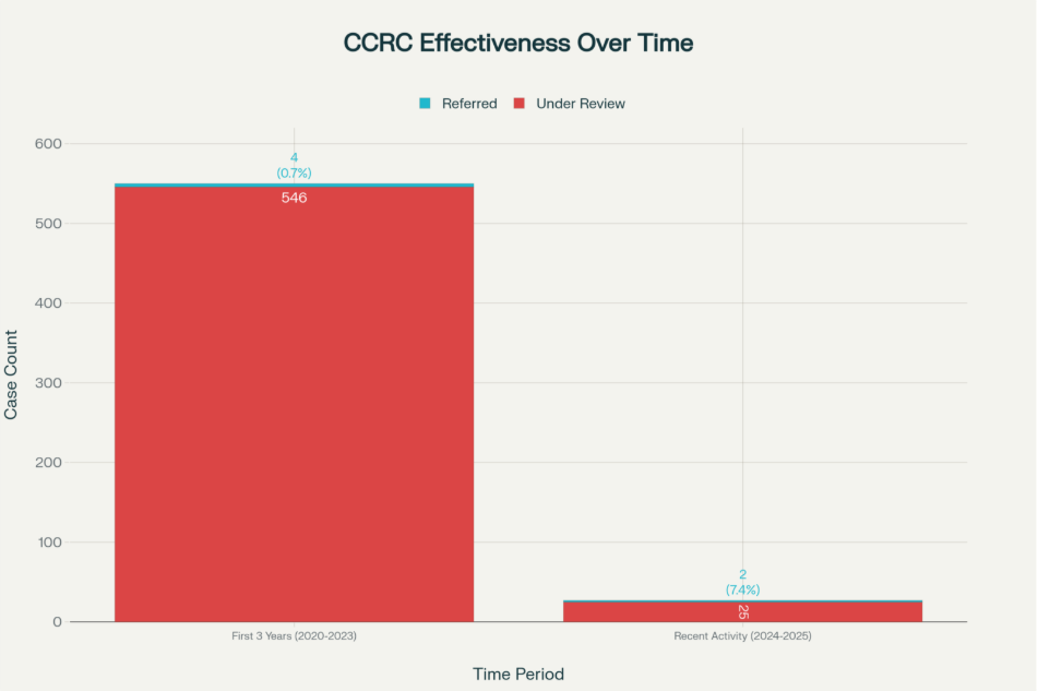 The CCRC was supposed to be “a safety valve” for New Zealand’s justice system. Yet in its first three years (2020-2023), it reviewed over 550 cases but referred only four convictions back to courts for reconsideration—a 0.7 percent success rate. That statistic masks something critical: every one of those referrals exposed catastrophic police and prosecutorial misconduct.