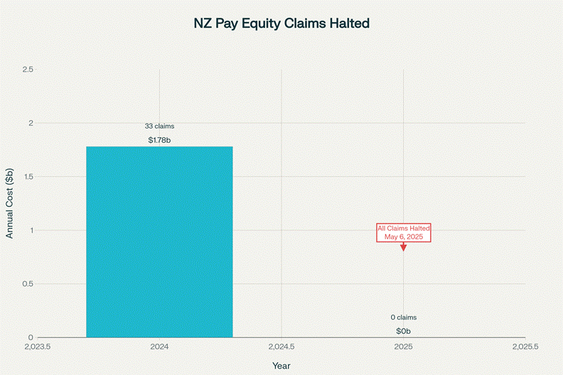 New Zealand Pay Equity System Dismantled: May 6, 2025. The coalition government halted all 33 active pay equity claims under urgency, eliminating $2.7 billion in annual protections for whāhine Māori and other underpaid workers. A $12.8 billion, four-year commitment to gender pay equity was wiped out in 48 hours.