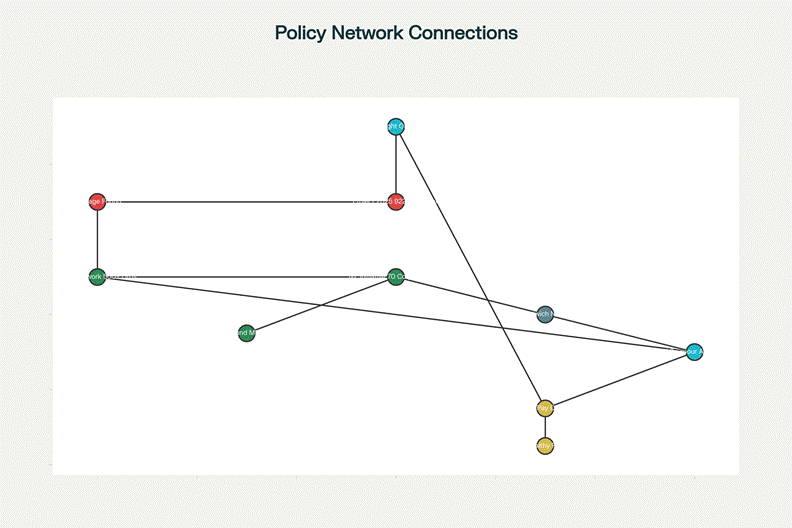 The pattern is clear: corporations fund think tanks; think tanks hire economists and researchers who produce policy papers; these papers are promoted to media and politicians; politicians then implement the policies. No direct transaction needs to be visible. The flow is structural.