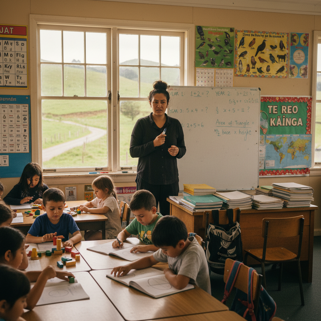 A rural New Zealand classroom where teachers face the impossible task of teaching strict year-by-year curriculum to students spanning multiple age groups