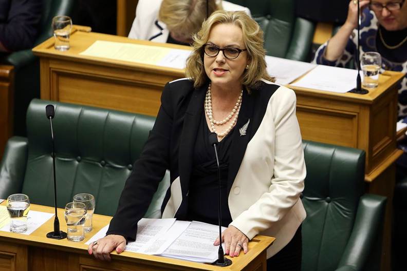 Judith Collins speaking in New Zealand’s Parliament, showcasing her role in government proceedings.