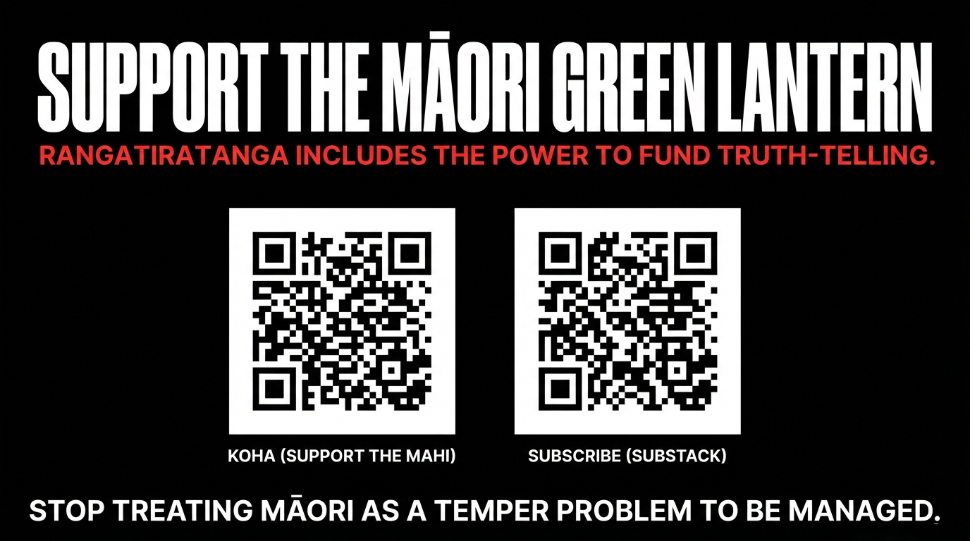 Subscribe to the Māori Green Lantern on Substack – https://themaorigreenlantern.substack.com/subscribe - For those who prefer direct bank transfer, account details are: HTDM, account number 031546-0415173-000.