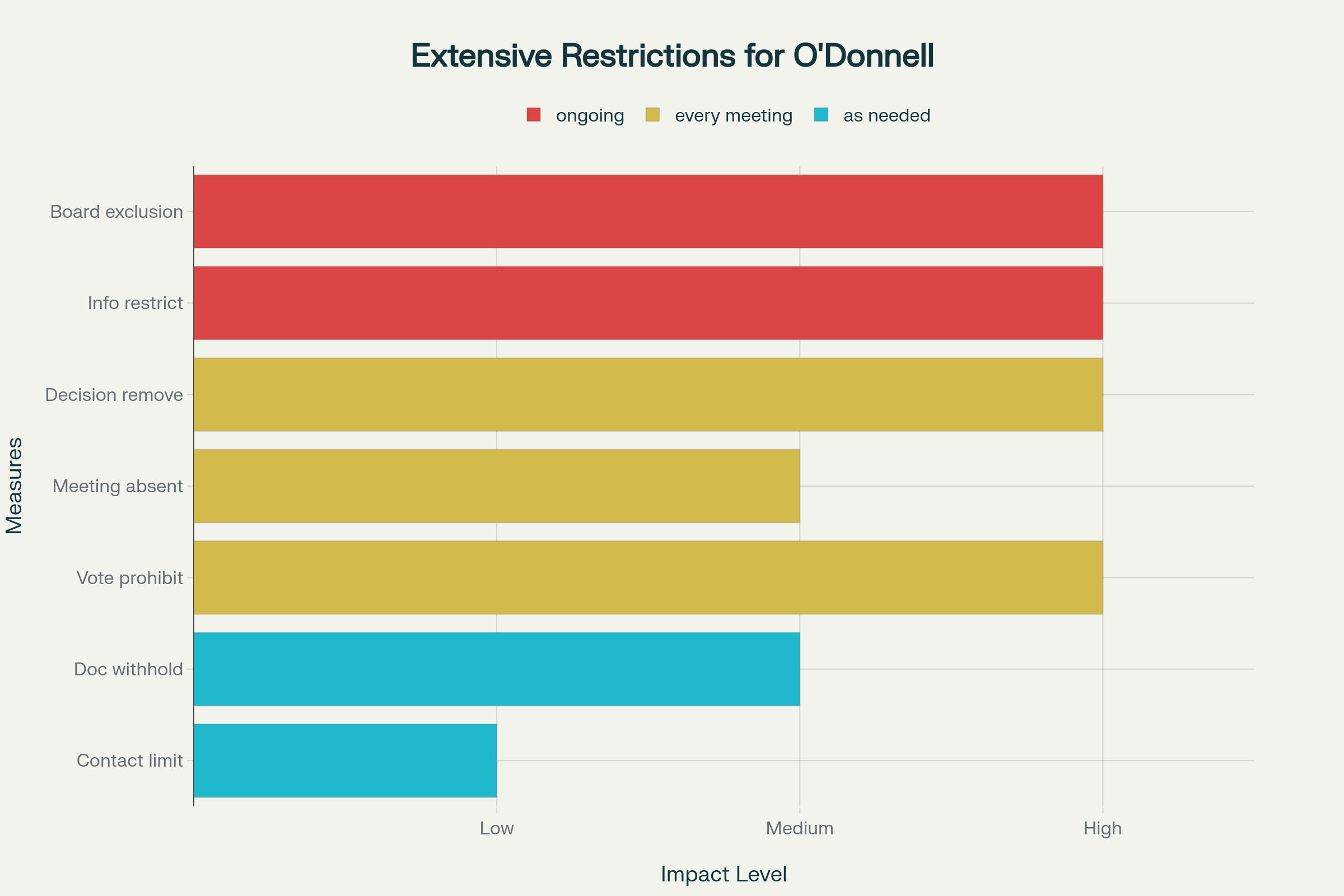 Peters' assertion that O'Donnell would be "effective in his role" despite the extensive restrictions placed on him borders on the absurd. How can a board member be effective when he must be excluded from sensitive information, recuse himself from discussions, and operate under constant supervision due to conflicts of interest?