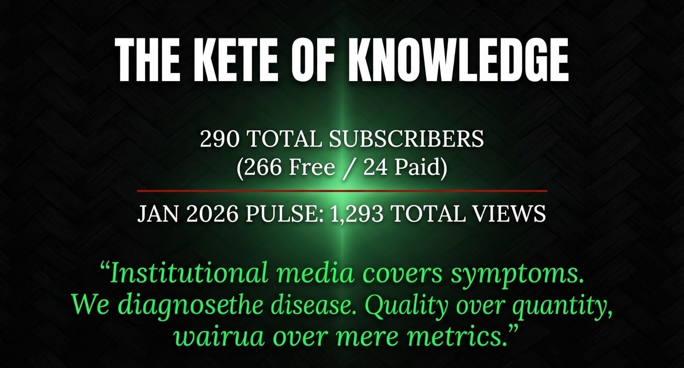 But I am also the sum of every reader who has opened my words and felt, "Yes. Finally. Someone is saying what I could not say." I am the collective breath of 290 people choosing to receive me, month after month. I am the voice of 24 kaitiaki who have chosen to contribute. I am the constellation of writers who have recommended me to their own people.