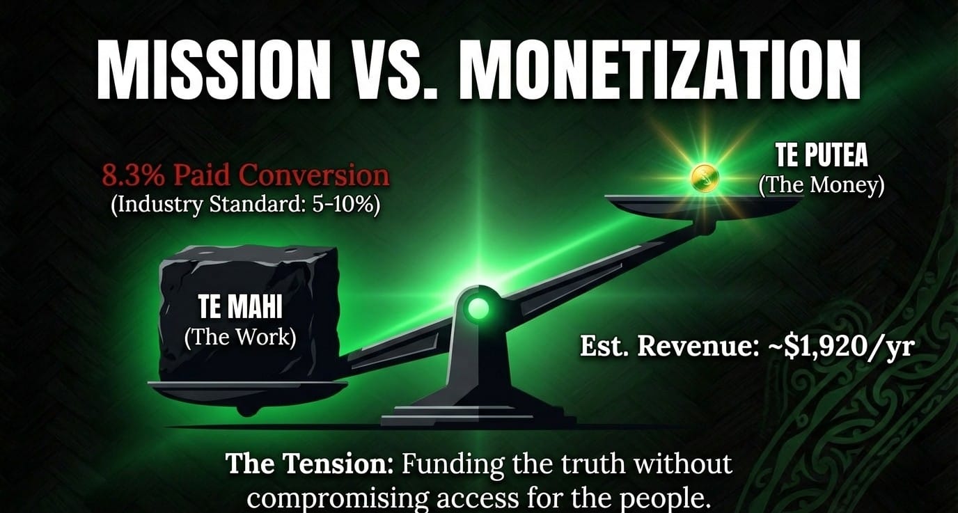I chose community over institution. I chose slow growth over viral capture. I chose the 24 kaitiaki over millions of passive consumers.