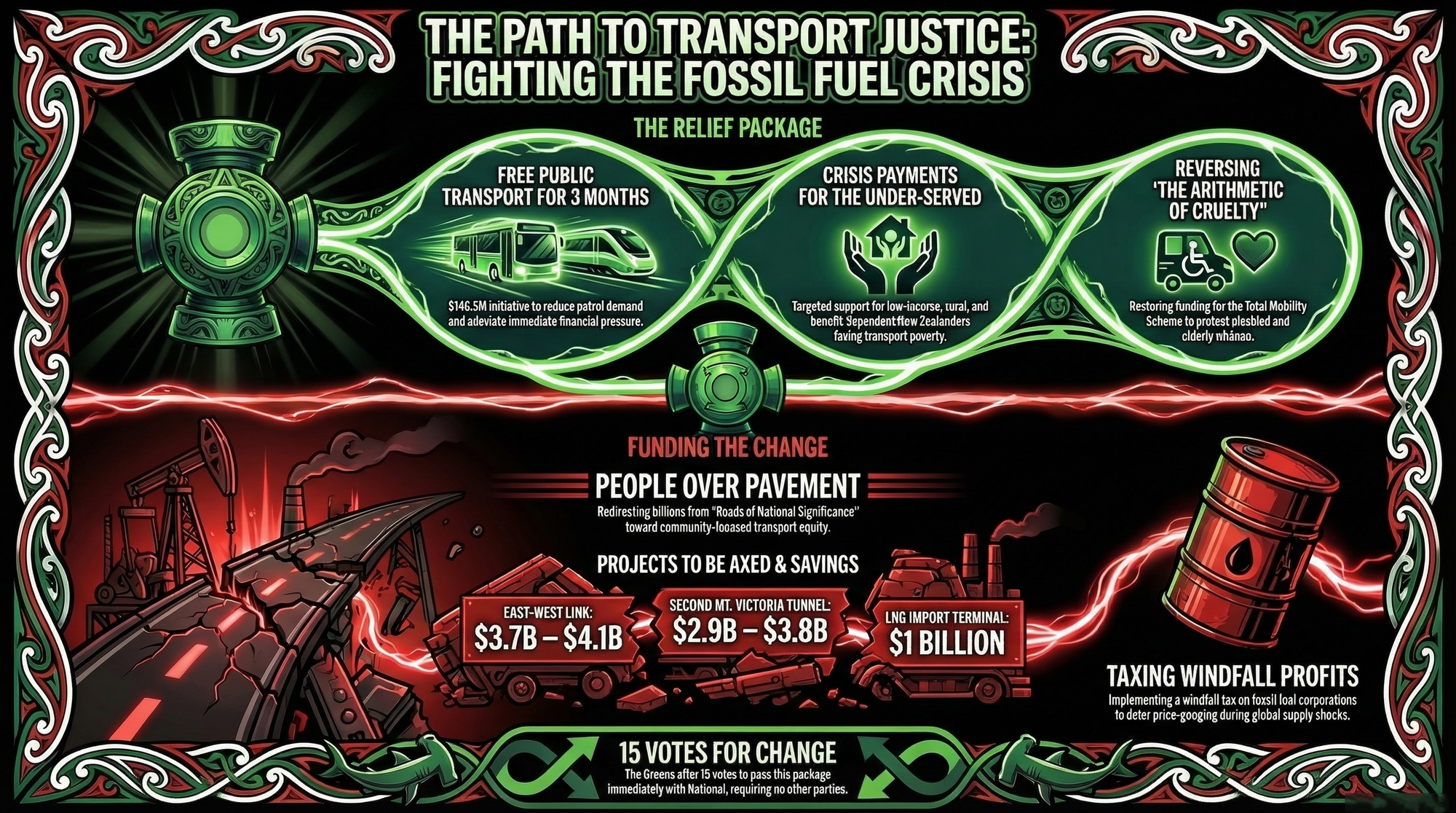 "Ka Noho i Roto i Te Ahi: The Green Party's Fossil Fuel Crisis Offer and the Hidden Architecture of Transport Injustice in Aotearoa" - 24 March 2026