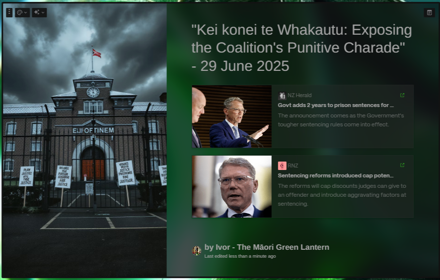 True justice requires dismantling the colonial systems that create crime and embracing approaches based on Māori values of restoration, relationship, and collective responsibility. Until we address the structural racism, inequality, and colonial trauma that drive crime, these punitive measures will only perpetuate cycles of harm while enriching the prison industrial complex.