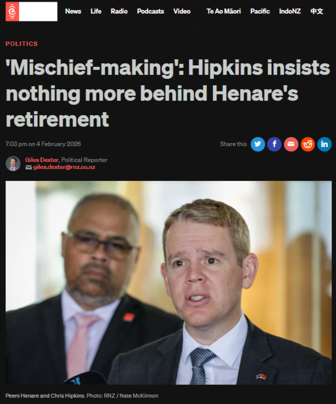 Peeni Henare’s retirement is not a personal choice—it’s a political execution, carefully staged to look like natural attrition. Labour didn’t force Henare out with scandal or public conflict.