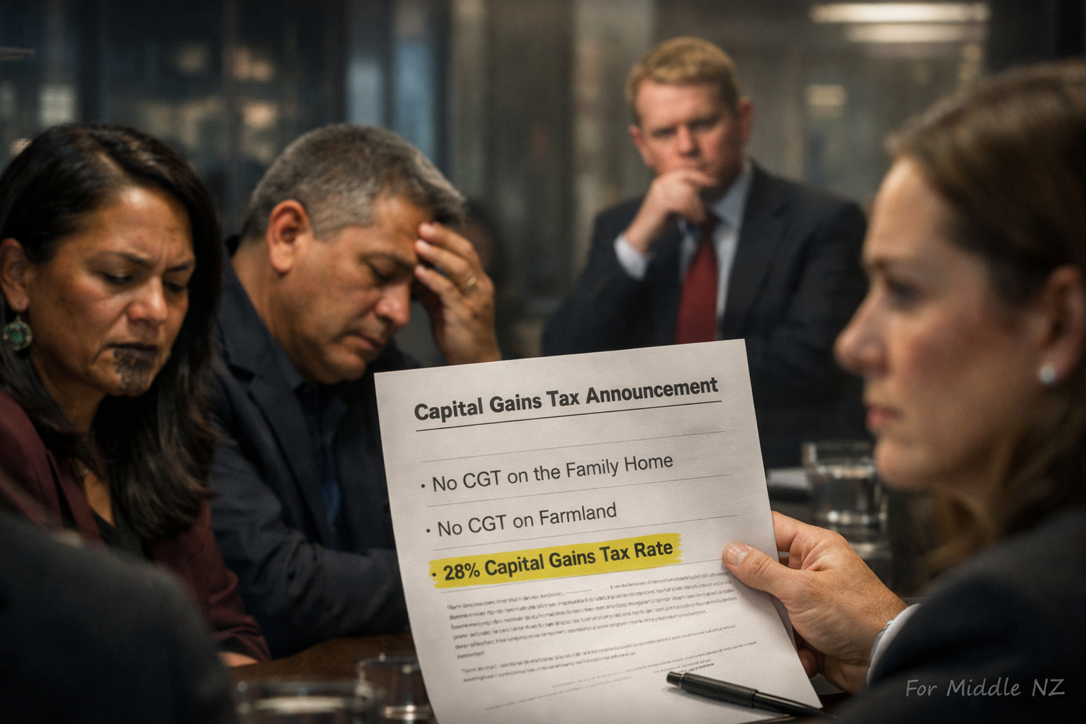 Labour’s strategic calculation is clear when we examine Hipkins’ post-2023 repositioning. Labour announced a capital gains tax in October 2025—but a narrow one, covering only property (excluding family homes and farms), at 28 percent. It was explicitly designed to be unthreatening to middle-class Pākehā voters who feared wealth redistribution.