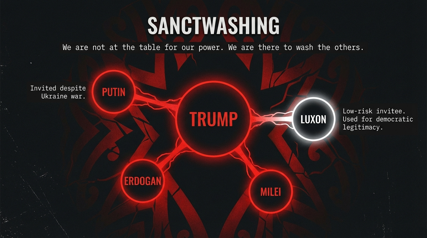In that light, the Board of Peace invitation is not mysterious. On the contrary, Luxon embodies exactly the type of leader such a body is designed to attract: