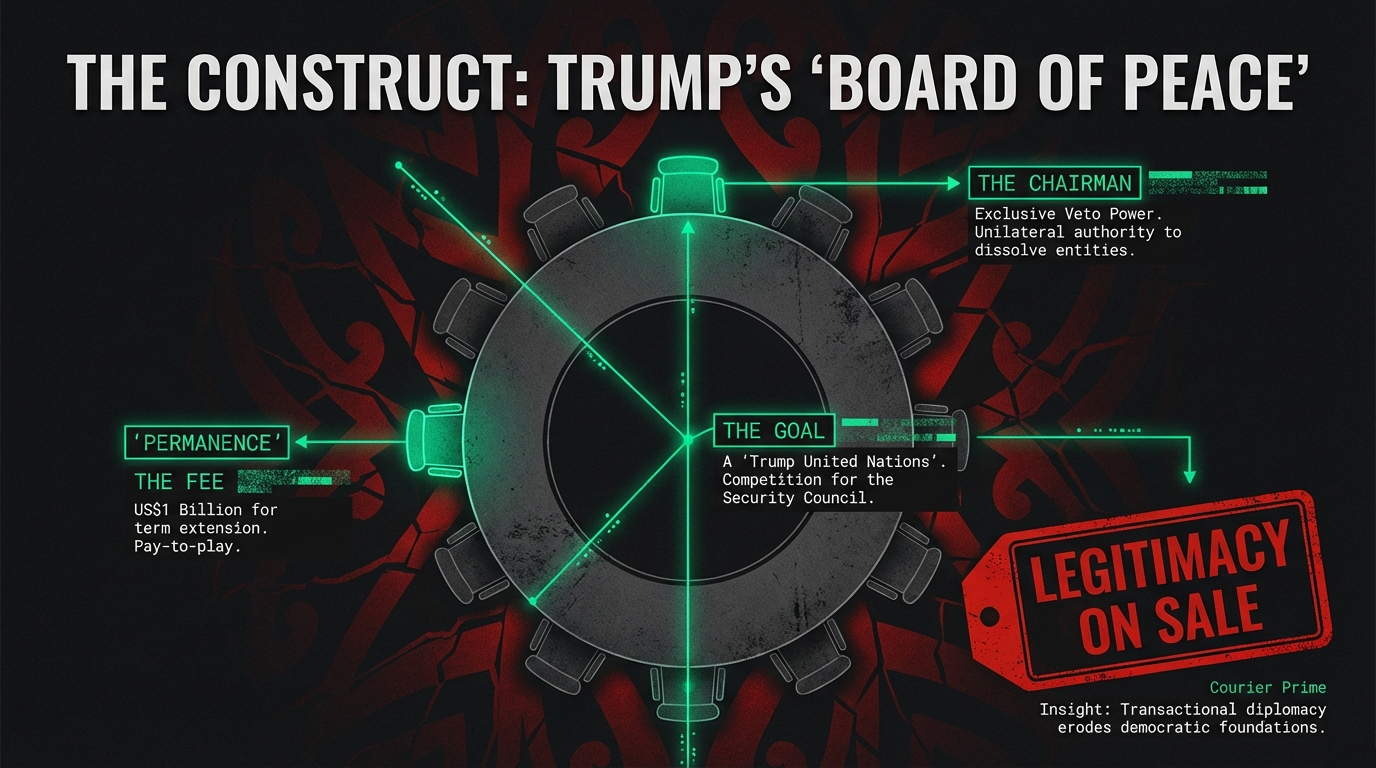 This is not a peace initiative in any traditional sense. It is a stage on which Trump intends to stand flanked by a curated cast of world leaders, using their presence to validate a governance structure narrower, more centralised, and more easily bent to his will than the one it seeks to overshadow.