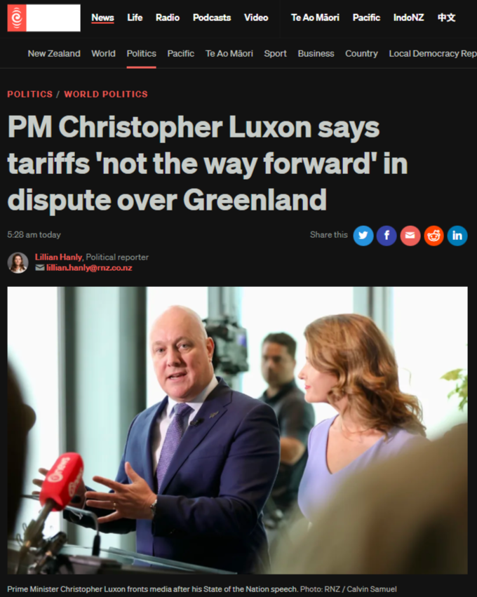 Within this wider pattern, Christopher Luxon’s interventions on Trump’s Greenland tariffs are notable less for their content than for their caution.