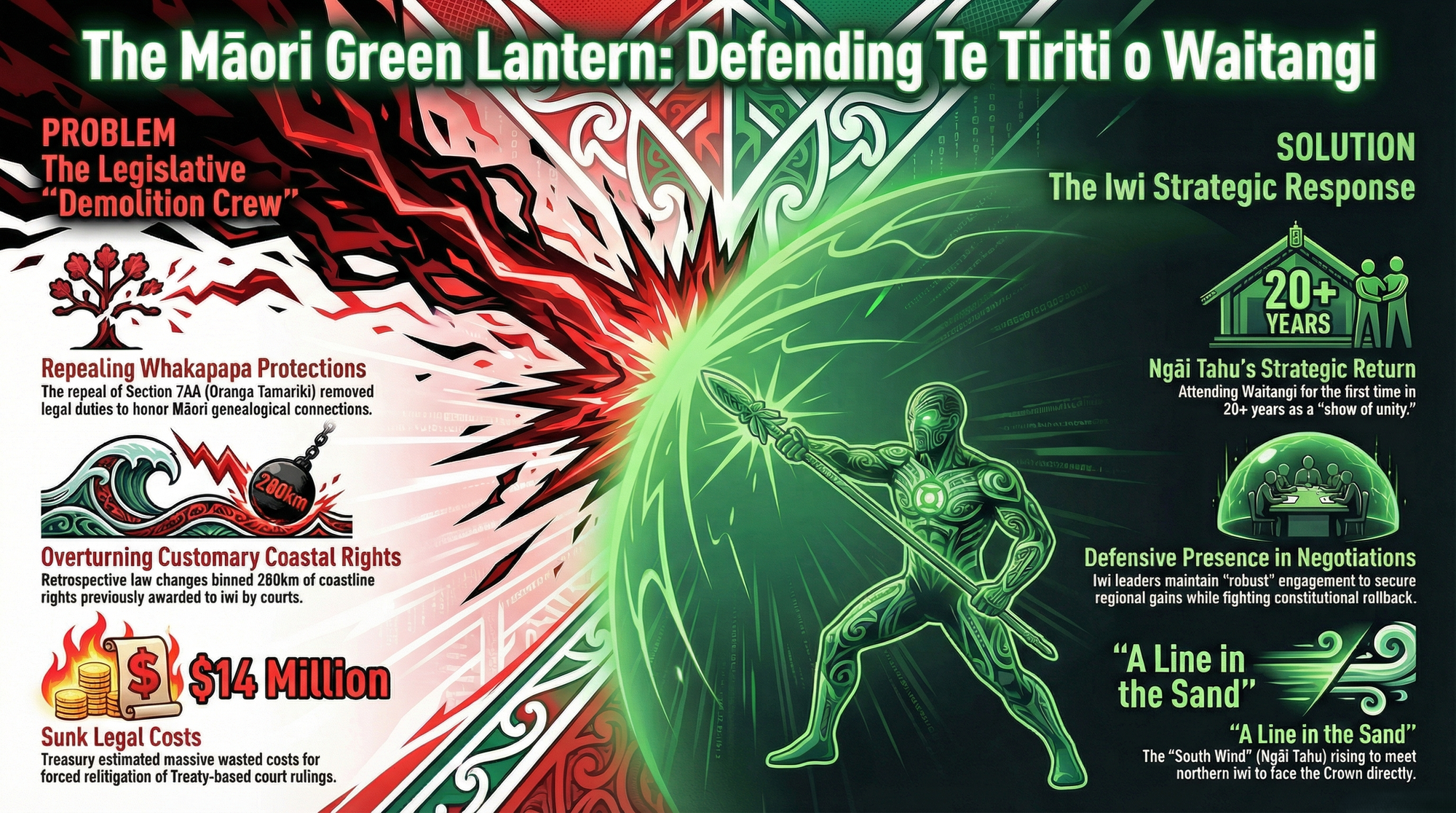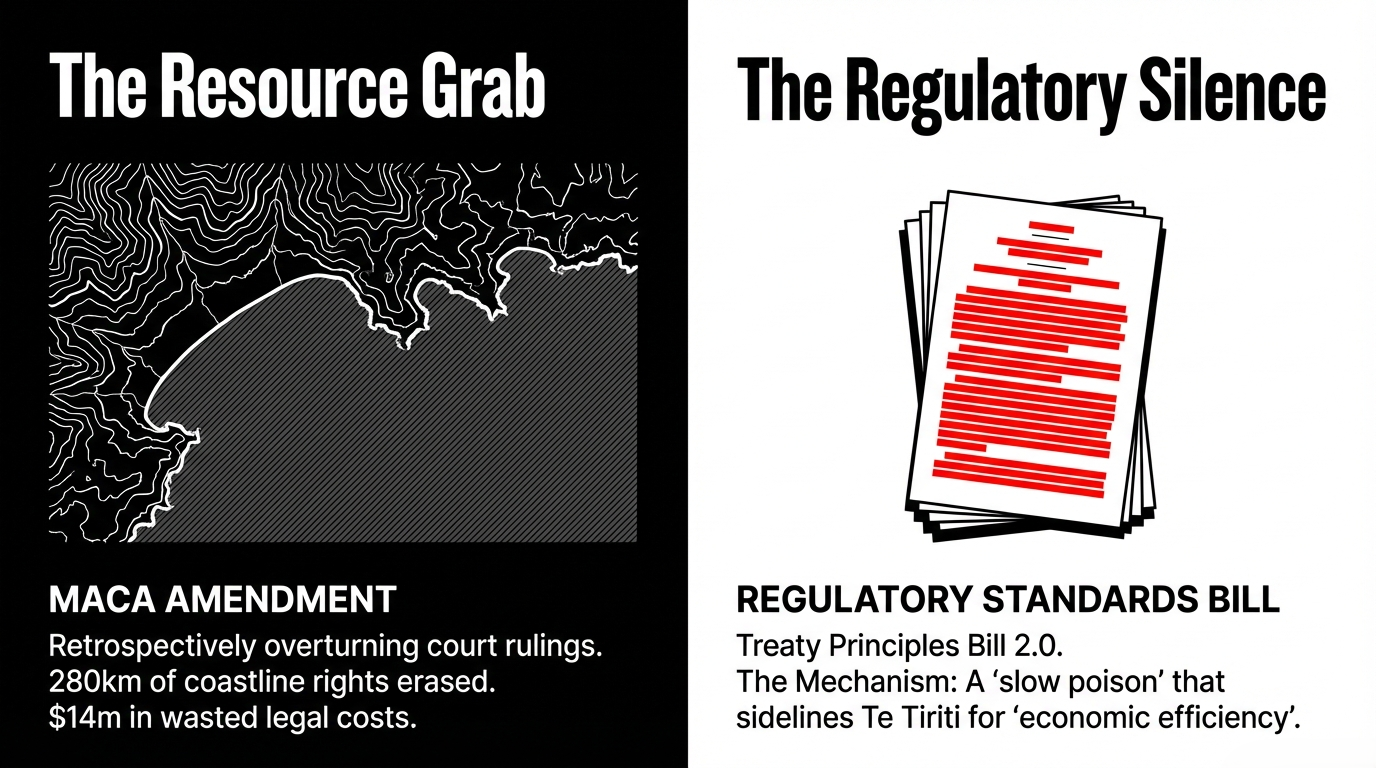 Tikanga impact: This is an assault on tino rangatiratanga through legal engineering—turning Treaty obligations from a binding compass into a decorative sticker that can be peeled off in the name of “efficiency”.
