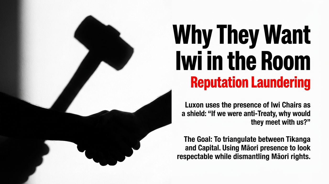 And the ultimate insult is that the Prime Minister insists—eyes straight into the camera—that this is not anti‑Treaty, while pointing to a single “constructive” meeting with iwi leaders as his alibi RNZ.