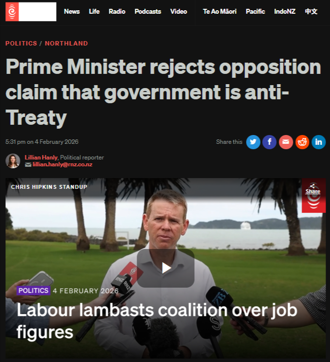 And Luxon calls this “not anti‑Treaty”, as he rejects Hipkins’ accusation in that RNZ interview, claiming his government is honouring the relationship while these laws roll on RNZ.