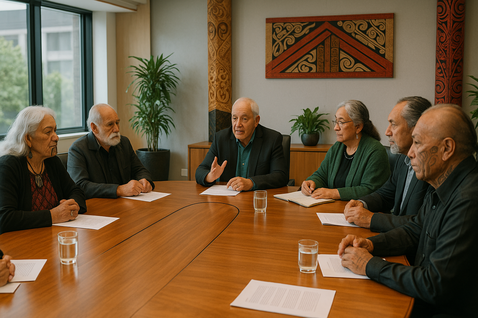 Māori elders discussing Economic growth vs Māori values