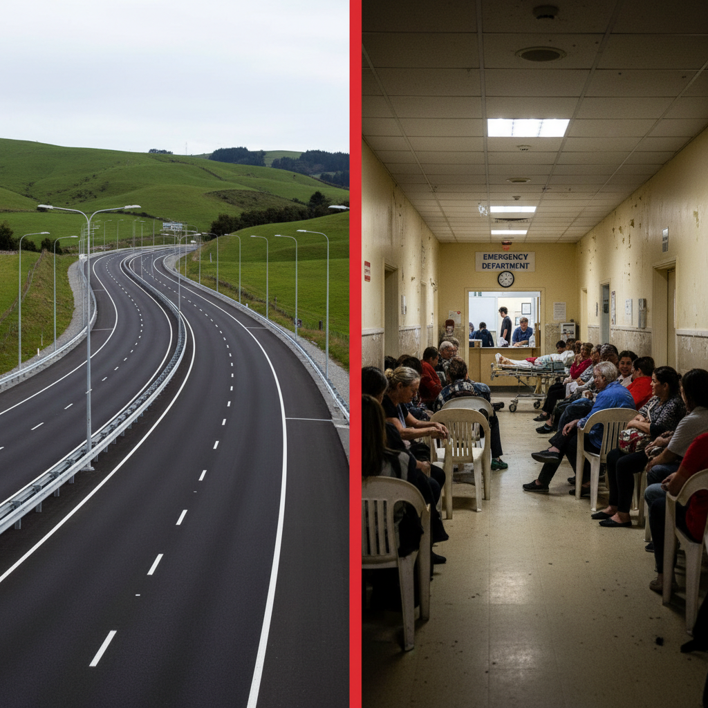 The Tikanga Explanation for the Western Mind: Kaitiakitanga is the obligation to protect and sustain for future generations. A kaitiaki does not build a monument while the house burns. A kaitiaki fixes the roof, feeds the children, heals the sick — and only then, if resources allow, builds something new. This government does the opposite. It builds $54 billion worth of highway monuments while hospitals crumble, while children go hungry, while the existing roads that kill Māori families receive less maintenance and less safety funding. These roads are not taonga. They are tūpāpaku — dead things masquerading as progress.