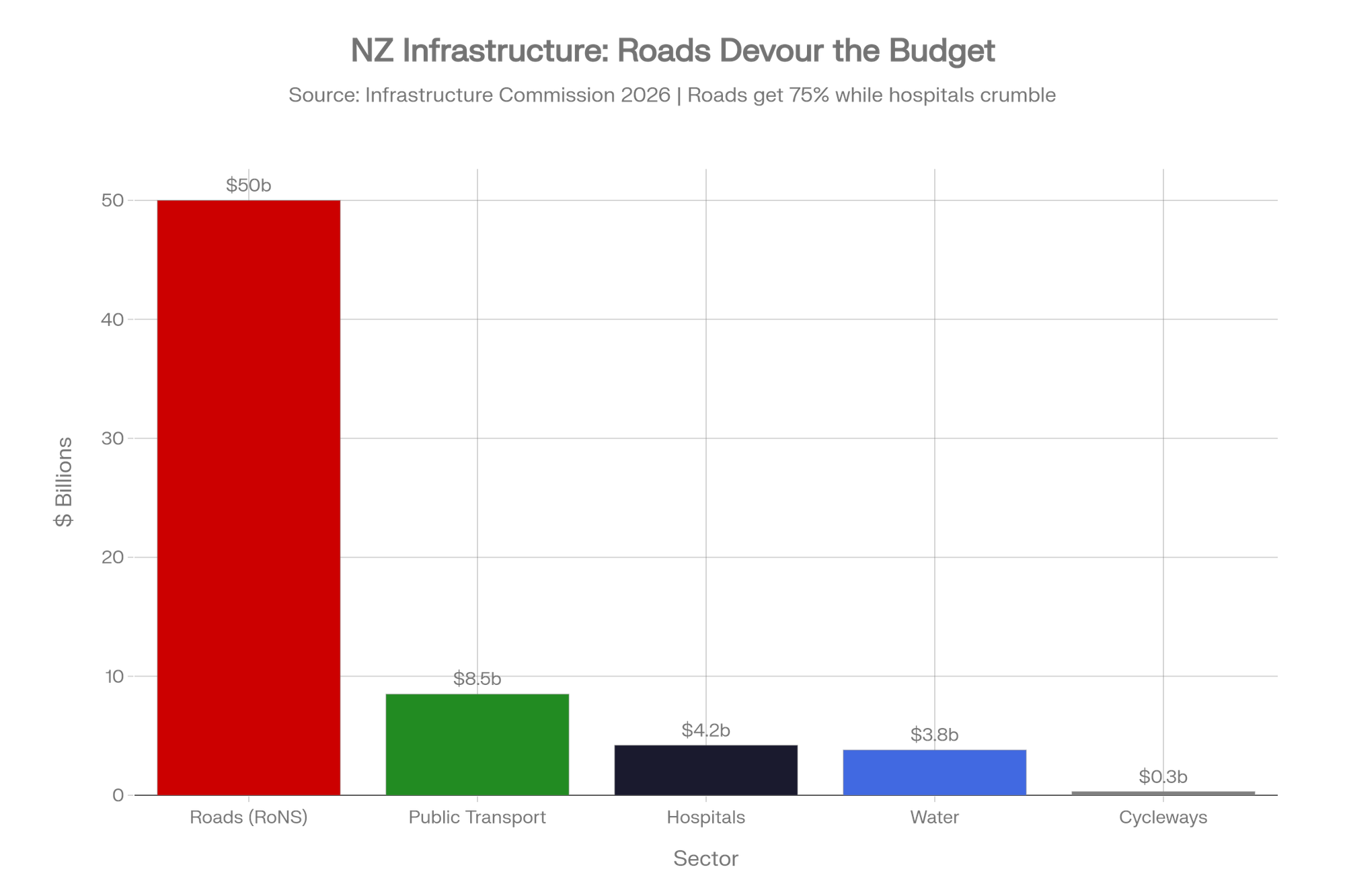 Transport Minister Simeon Brown said it himself in 2024: "There's less money going into cycleways, and I think New Zealanders are sick and tired of the amount of money going into cycleways." The National Land Transport Programme allocated $32.9 billion over three years, with the bulk going to RONS while local roads, public transport, safety, and walking and cycling lost out.
