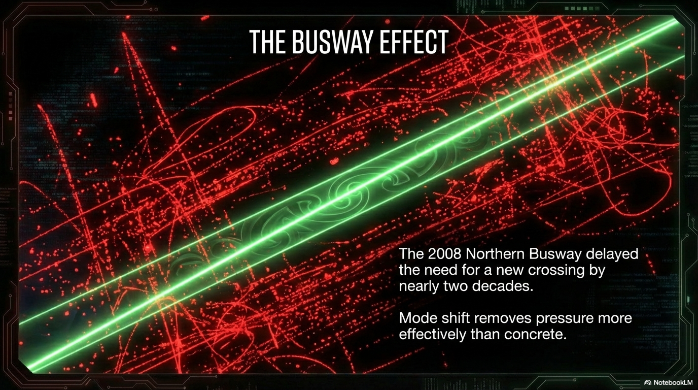 The Numbers: The Northern Busway, opened in 2008, delayed the need to spend billions on a harbour crossing by absorbing commuter demand. Over 35,000 bus passengers cross the bridge daily. Public transport works. It has already proven itself on this exact corridor.